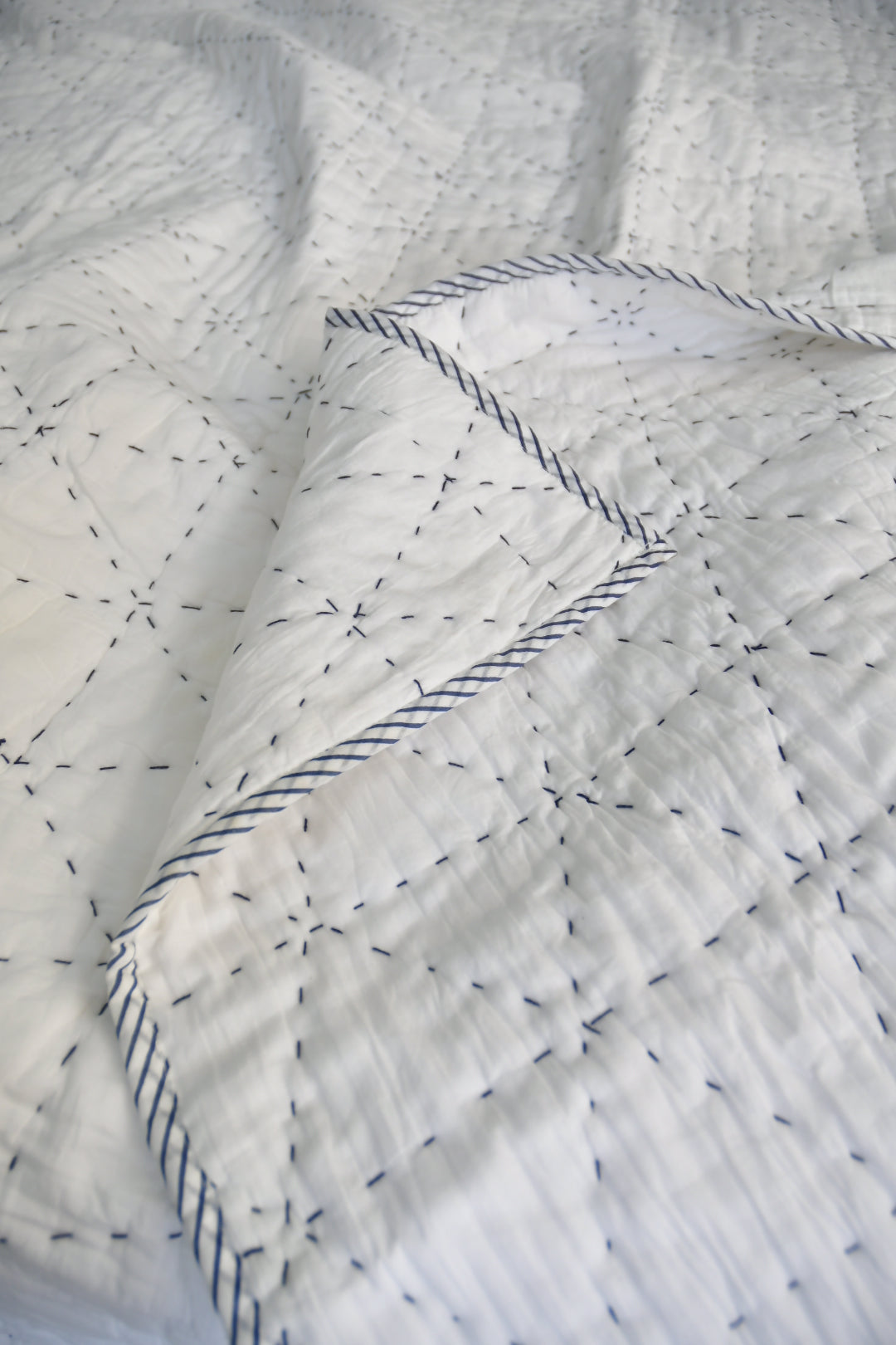 Experience the soft embrace of our handcrafted quilts, where intricate detailing, rich textures, and thoughtful craftsmanship come together to offer year-round comfort and effortless style.