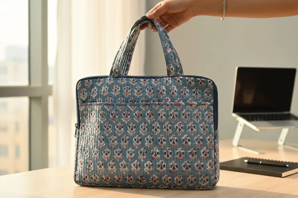 Shop our luxury laptop bags and laptop sleeves, hand-blocked in Jaipur. These lightweight laptop bags are crafted from 100% premium cotton for a durable, stylish professional carry.