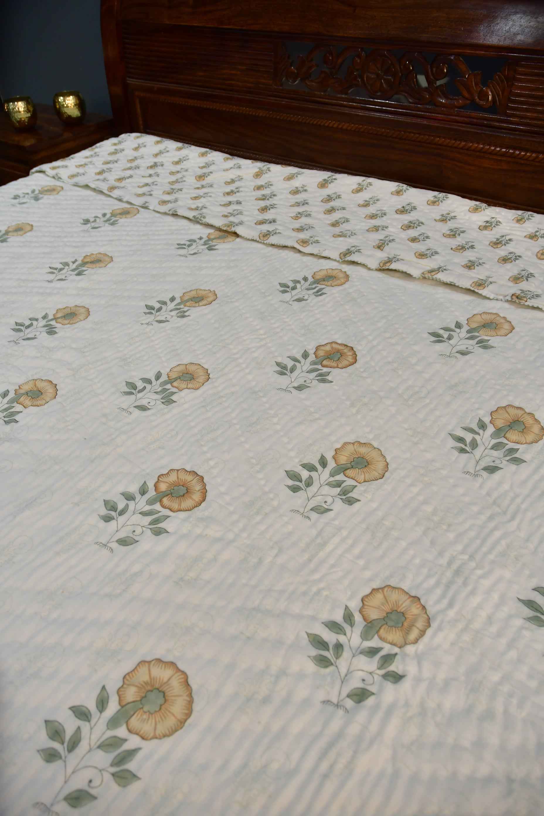 Flower of Hope Handblock Mul Mul Quilt – Reversible Cotton Jaipuri Quilt