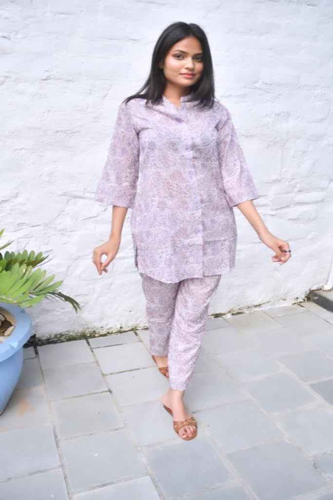 Lilac Floral Handblock Co-ord Set for Women - Effortless Style in Co Ords Women