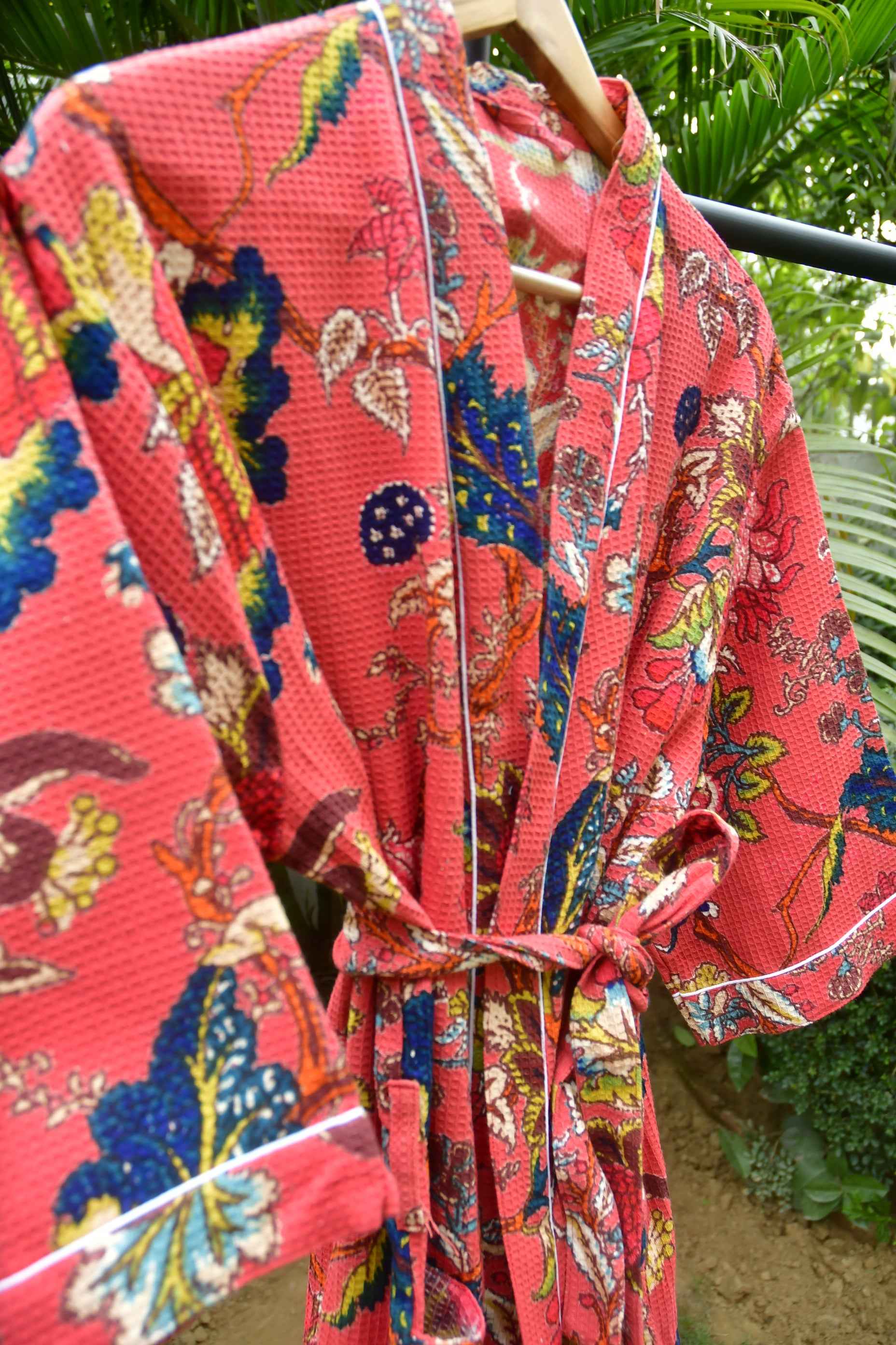 Experience the luxury of our Premium HandBlock waffle cotton bathrobes.Revel in the beauty and functionality of these robes, offering quick water absorption and a fast dry.Embrace comfort effortlessly with free size, soft, and lightweight robes.
