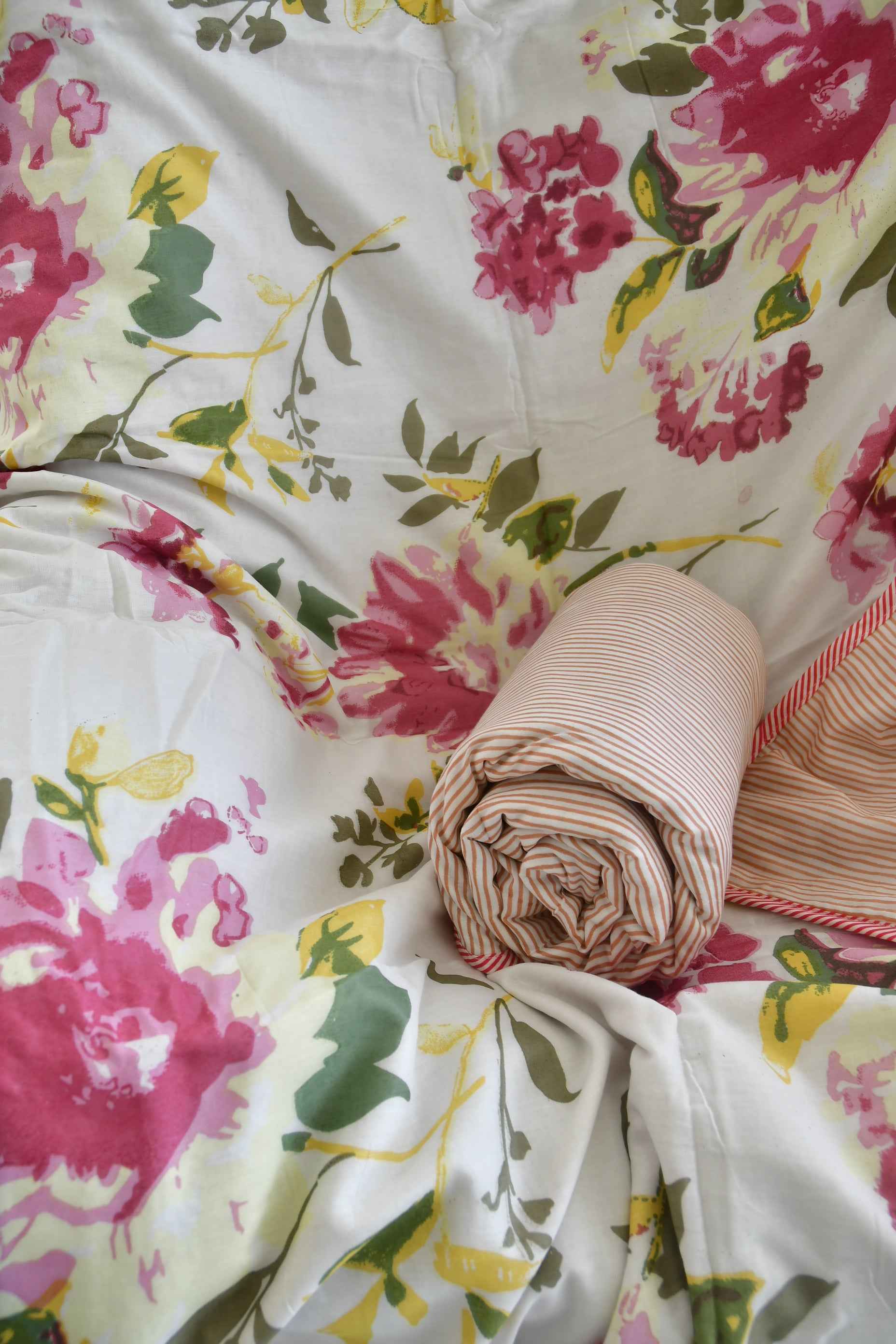 Pink Floral Reversible Dohar | Rajasthani Charm Cotton Blanket
